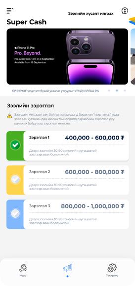 Та өөрийн утасны үйлдлийн системд тохирсон TCash аппликейшнээ татаж аваад зээлээ аваарай.